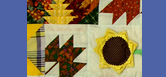| Gallery of Quilts(Click on a swatch to view additional quilts) In 2004, I was invited to hang a one-woman quilt show by the Raynham Public Library. Twenty-one quilts from full sized bed quilts to wall hangings spent several months on exhibit. These were only a fraction of the quilts I have made over the years as most have been given away as gifts or are on loan for exhibit. Eighty percent or more of my quilts are original designs, mostly derived from traditional quilt blocks.